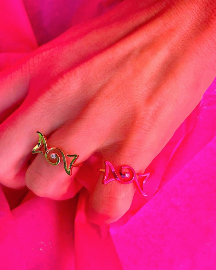 🍬18K yellow & fuchsia gold with one diamond.