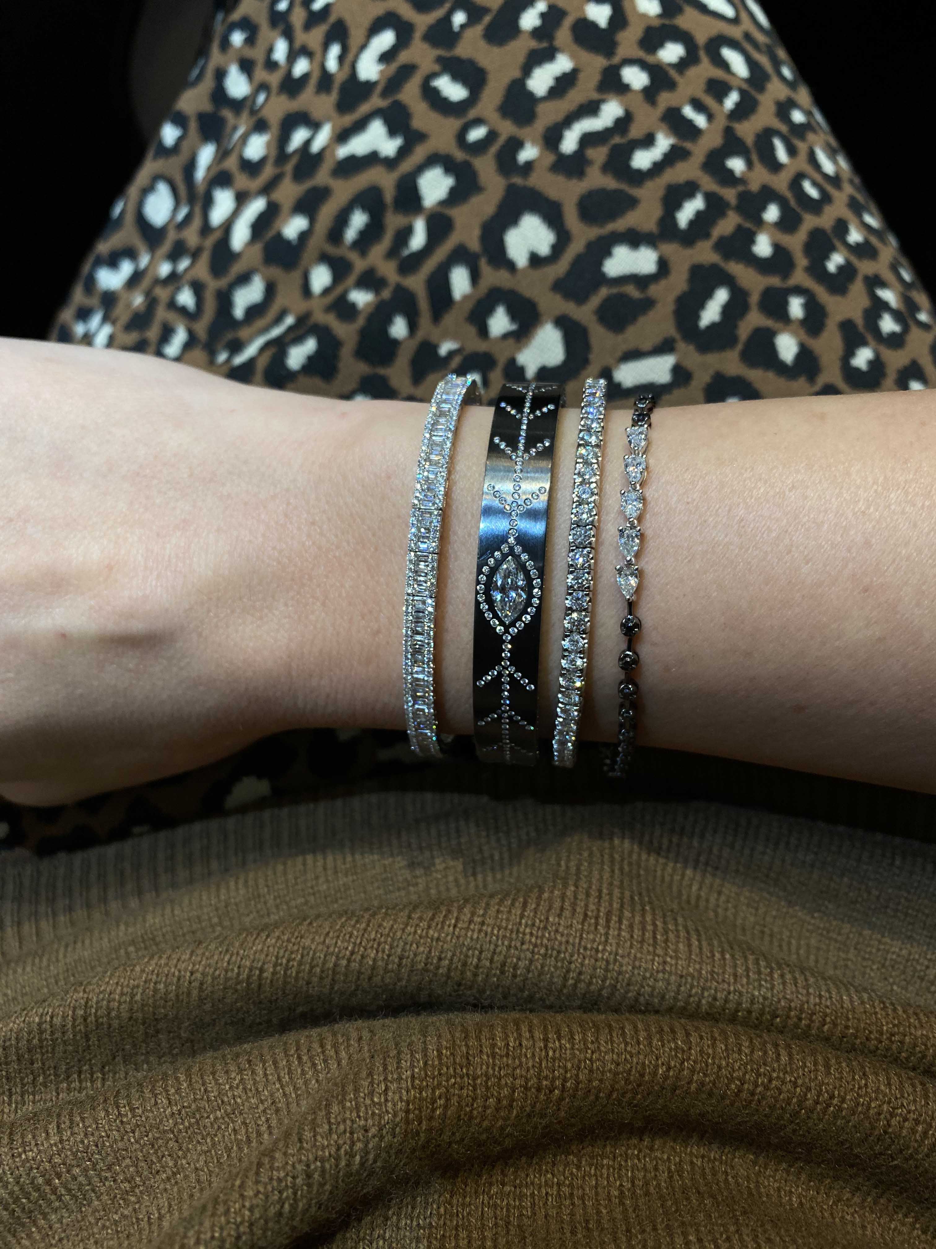 Tennis bracelets are so in they must be worn in a set of three.