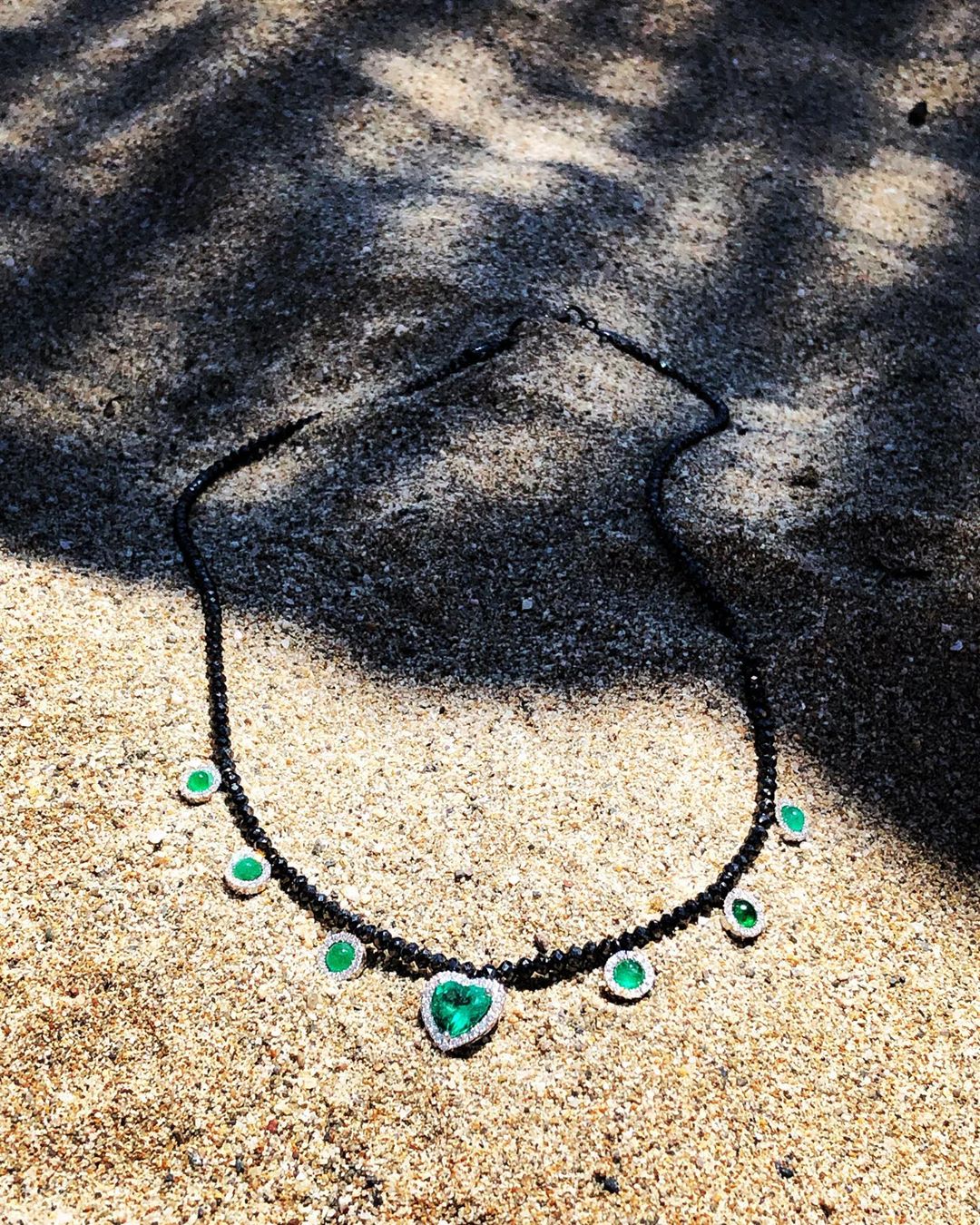 This unique necklace with emerald stones and brilliant white diamonds has stolen our heart. A special jewel that gives off easy day and evening elegance.