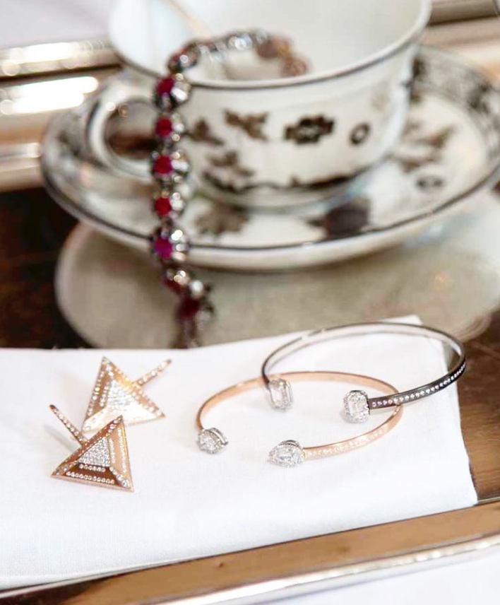 an all Danelian set of rivieras, eternities and emerald cuts.